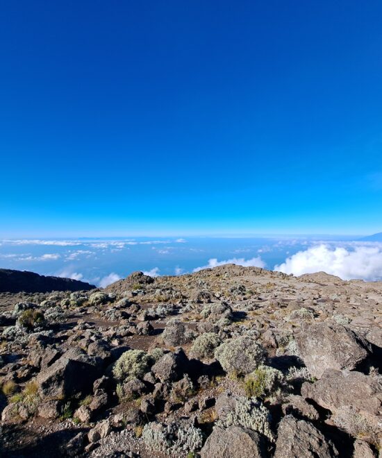 On this day, you’ll continue your trek towards Kibo Summit Camp (4,700 m). The landscape will change dramatically, giving way to a rocky, semi-desert terrain. Although the trekking itself is not very challenging, it’s important to maintain a steady pace to conserve your energy for the summit push later.Upon arrival at Kibo Camp, it’s essential to get plenty of rest, avoid any strenuous activities, and hydrate as much as possible. This preparation is crucial because, later that night, you will begin your ascent to Uhuru Peak (5,895 m), the summit of Mount Kilimanjaro.Details for the day:Altitude gain: Mawenzi Tarn Camp (4,310 m) to Kibo Camp (4,700 m) Walking distance: 9 km Duration: 5–6 hours